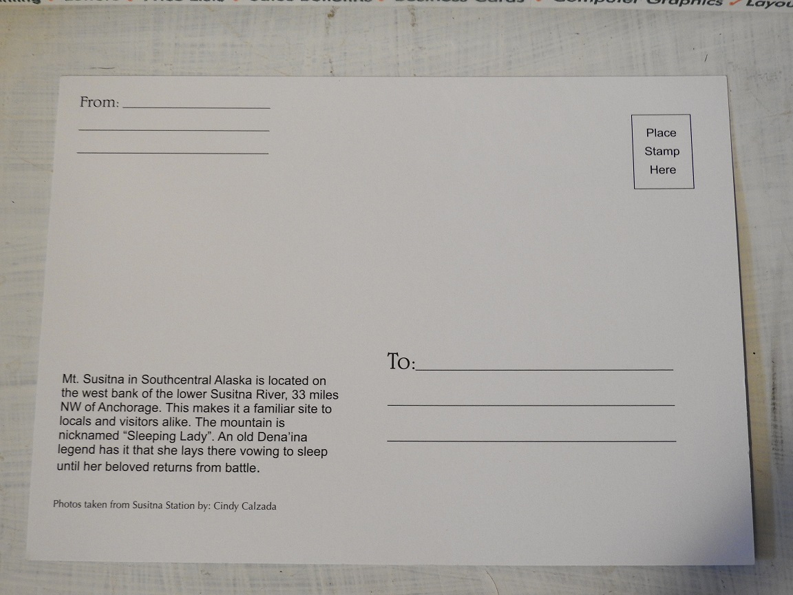 Postcard mailed to you from Alaska for $2.00 each anywhere n the United States or $3.50 each mailed internationally. Must include name, address to mail to along with payment.
